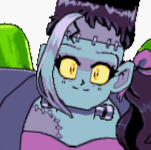 A ghoul with a big heart, and a short temper when things do not go her way. She's strong willed, responsible, impatient, opinionated, and often manipulative. Thinks of herself as a homemaker often making dinner, and cleaning the castle. Her strength rivals that of Wolffia, but instead of brute force she relies on mimicry. Ghulah can transform into anything she eats. Mostly having a human like appearance. This allows Ghulah to act as a spy in the village to gather information for Hauntvania.